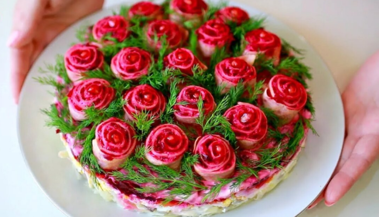 Салат «Букет роз» — один из вариантов оформления знакомой нам селедки под шубой. Привычный салат становится настоящим шедевром на праздничном столе!