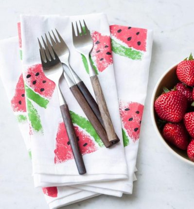 Ничто так напоминает о лете, как арбузы! Если вам нравятся их сочная мякоть и аромат, арбузные принты на салфетках и скатертях — это именно то, что вам нужно. Так что мы вооружаемся летним настроением и сделаем супер-позитивные арбузные салфетки. Они одинаково хорошо пойдут на будущее как для вечеринок, так и для воскресного ужина в круги семью, и добавят нотку чего-то невероятно милого и летнего к вашему столу.