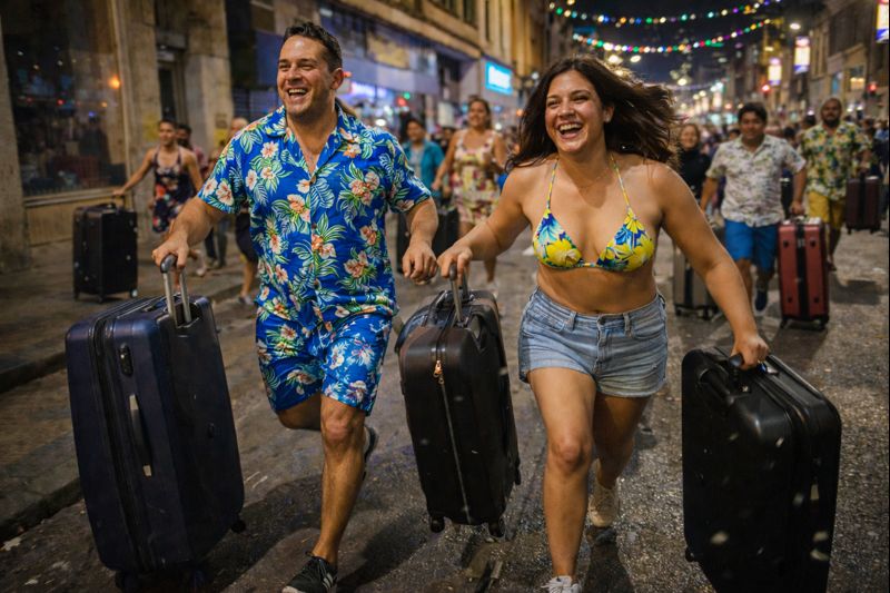 В столице Колумбии, Боготе, на новогоднюю ночь улицы наполняются бегущими людьми… с чемоданами. Да, всё верно: местные жители верят, что если в полночь обежать квартал с пустым чемоданом, то в следующем году будет много путешествий.