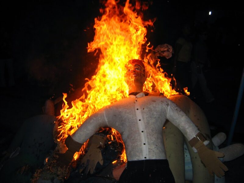 Но празднуют его в разных странах по-разному. Где-то в бой курантов бросают посуду, где-то — прогуливаются с чемоданами по улицам, а где-то… сжигают чучела из газет!