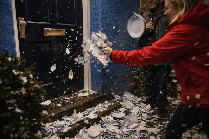 В Копенгагене и других городах Дании Новый год встречают с грохотом — буквально. По традиции, датчане приносят ненужную посуду и разбивают её о двери домов своих друзей и родных.