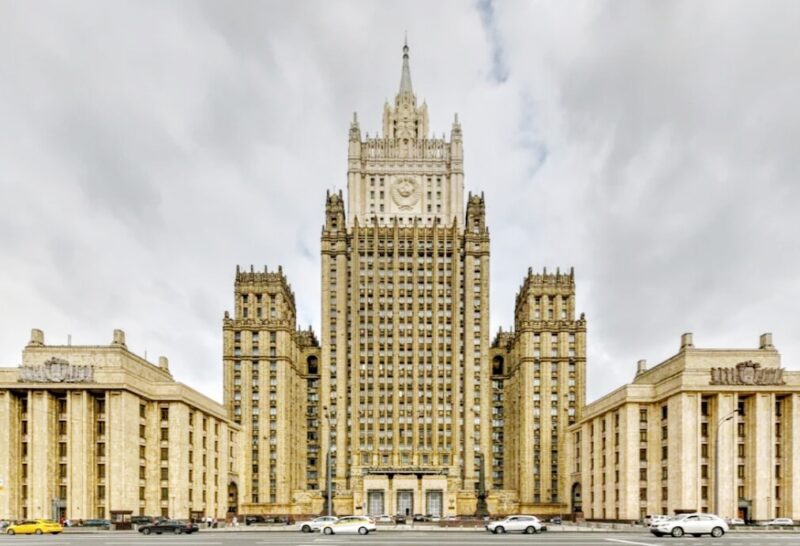 Здание Министерства иностранных дел на Смоленской-Сенной площади — одна из самых строгих и лаконичных сталинских высоток. Её проектированием занимались архитекторы В. Г. Гельфрейх и М. А.Минкус, а строительство велось с 1948 по 1953 годы.