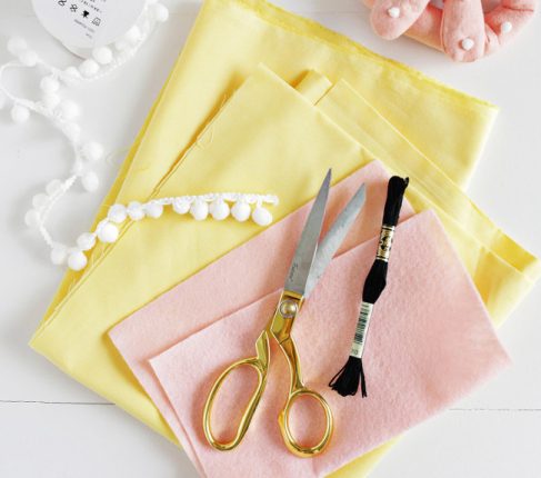Сложите желтую ткань пополам и вырежьте овал 25×30 см. Получится два овала: один для передней части подушки, другой — для задней. Если вам кажется, что ткань тонкая, вы можете ее продублировать флизелином.