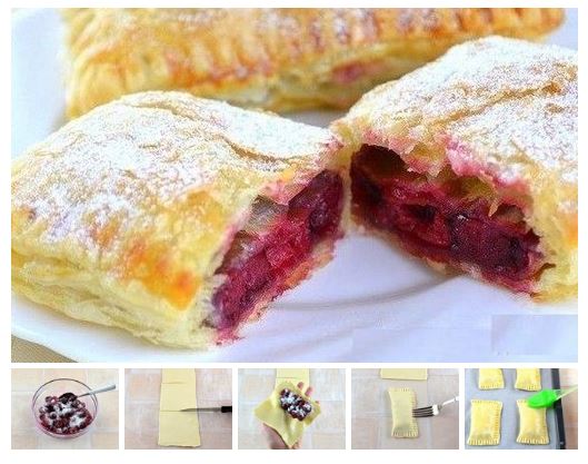 Слойки из готового слоеного теста с начинкой из замороженной вишни