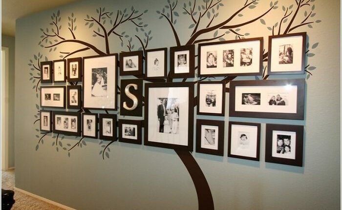 12. Семейный фотоуголок: тёмные рамки на светлой стене
