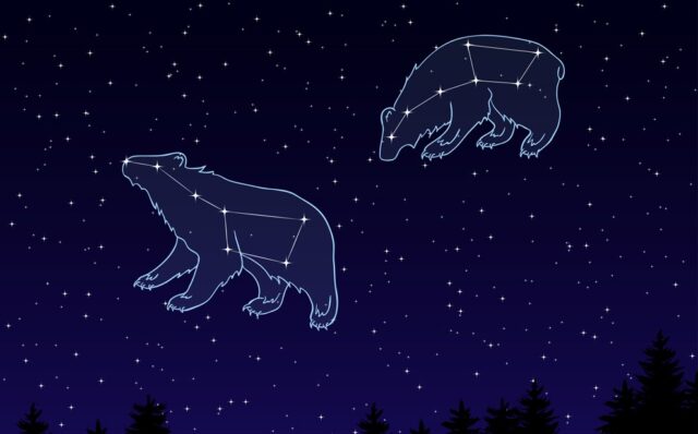 Наиболее известные созвездия северного неба — это созвездия Большой и Малой Медведицы,  в которой находится самая яркая Полярная звезда.