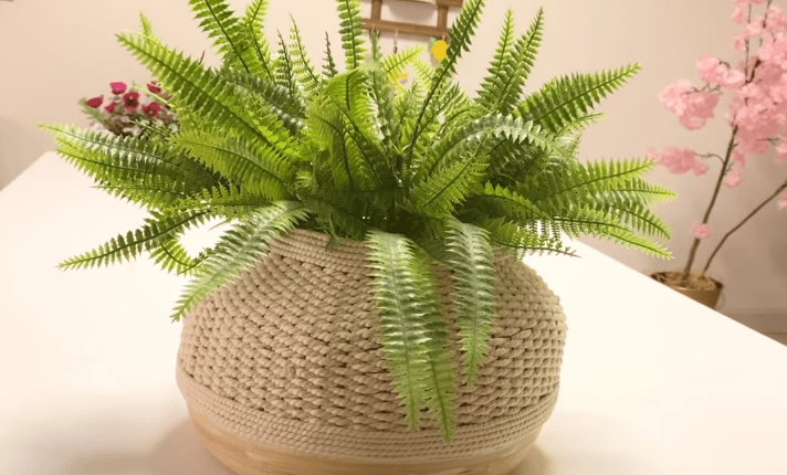 Многим из нас нравятся плетеные или вязаные вещи, в том числе и красивые интерьерные корзинки для хранения и вазы. Действительно, такие вещи добавляют интерьеру какой-то особый уют, вот только цены на такие изделия в магазинах, как правило, совсем не уютные.