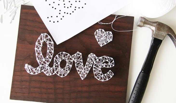 Одним из самых простых изображений, которое под силу начинающим мастерам, считается сердце. С такой композицией справиться даже ребенок, при условии, что взрослые вобьют в дощечку гвоздики. Такая поделка станет отличным подарком или просто украсит стену в вашей гостиной.