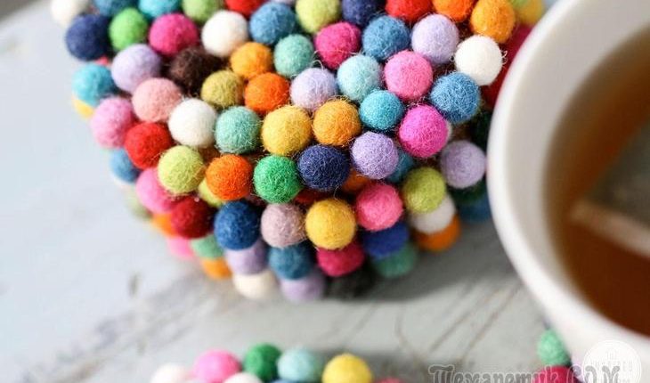 Такая мягкая подставка под чашку выглядит очень мило. Делается она из войлочных шариков, пробковой подставки и клея. Сделал эту милоту блогер Майкл Вурм (а что, парни тоже имеют вкус!).
