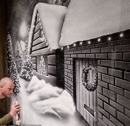 34-летний Скотт Уилкок (Scott Wilcock) из города Уиган создаёт на окнах и витринах потрясающие произведения искусства с помощью баллончиков с искусственным снегом.