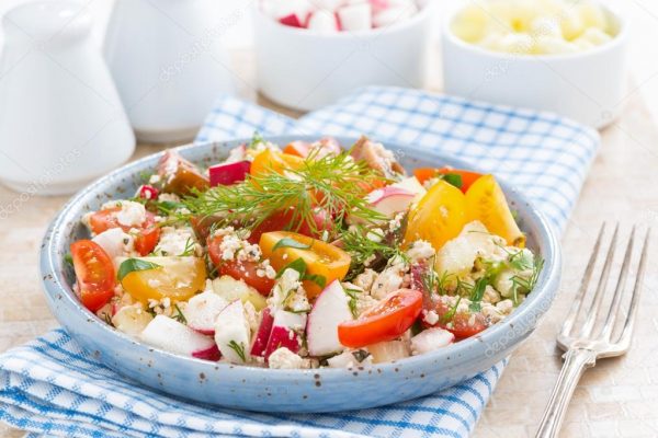 Творог + 50 гр помидора + 30 гр огурца + укроп + 1/4 ч.л чесночного порошка + щепотка соли = 202 кКал, 26.9/4.7/6.7
