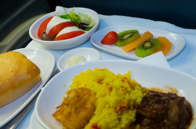 Девушка утверждает, что соус, прилагаемый к лапше, не хуже масла из наборов питания на борту. Она также берет с собой булочку, чтобы макать ее в заварившуюся массу.