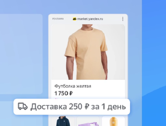 Информация о доставке может отображаться в однотоварном и многотоварных баннерах в РСЯ.