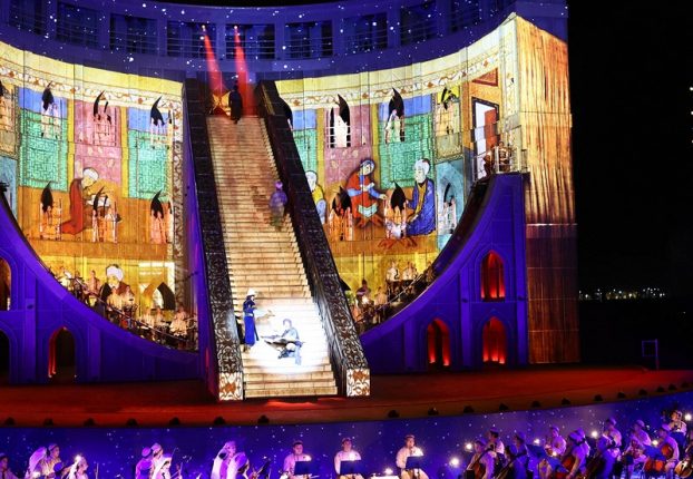 Торжественное событие развернулось в историко-этнографическом парке «Вечный город», расположенном на территории комплекса Silk Road Samarkand. Здесь, на берегу гребного канала, была установлена сцена весом 300 тонн и высотой 18 м. Режиссером-постановщиком праздничного мероприятия стал Андрей Болтенко, режиссер «Евровидения-2009» и Церемонии открытия Зимних Олимпийских игр 2014 г. в Сочи.