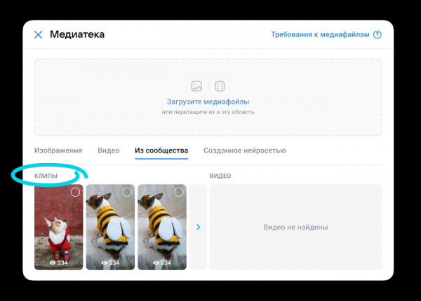 Новый клип для продвижения создавать не обязательно. Рекламодатели могут выбрать уже существующий ролик из медиатеки сообщества ВКонтакте. При настройке кампании необходимо будет выбрать цели «Подписаться» и «Написать сообщение».