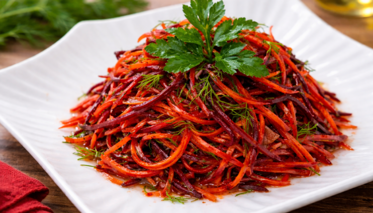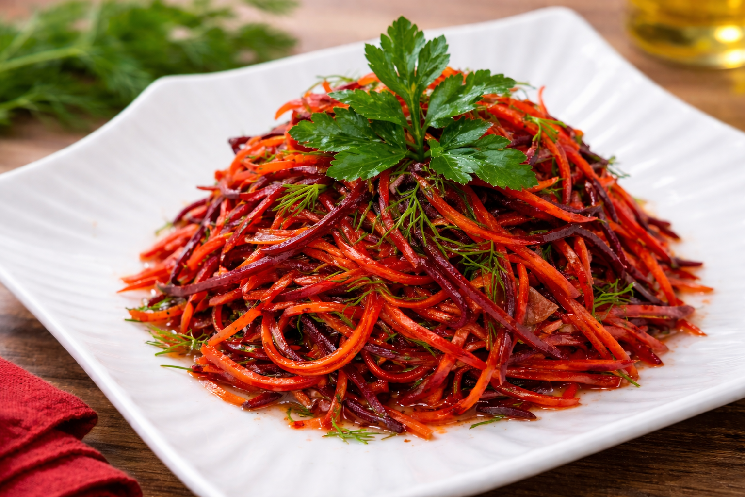 Этот салат — настоящая витаминная бомба! Яркий, хрустящий и невероятно ароматный салат из моркови и свеклы по-корейски станет вашей любимой закуской.