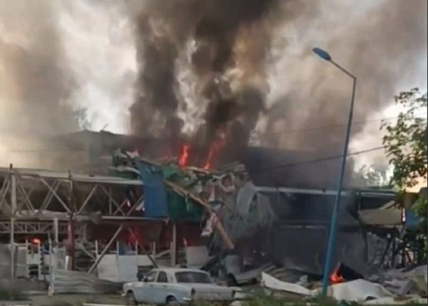 Очевидцы засняли последствия атаки противника – от супермаркета остались только конструкции, которые полыхали в огне.
