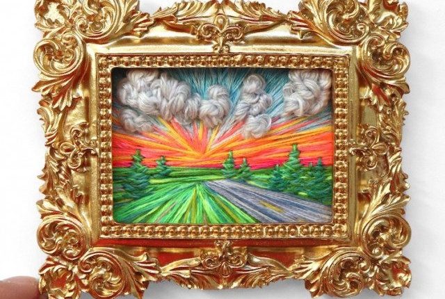 К последним относится художница Каролина Торрес (Carolina Torres) из штата Нью-Мехико, США, которая использует иглу и нитки для создания миниатюрных вышитых пейзажей с удивительным количеством деталей.С помощью различной техники вышивки Торрес создаёт текстурированные пейзажи с облаками, деревьями, лугами, цветами, оживающими с каждым стежком. От горных пейзажей до цветущих лугов, каждая красочная вышитая вручную картина обрамлена в миниатюрную рамку, становясь похожей на то, что могло бы украшать кукольный домик.