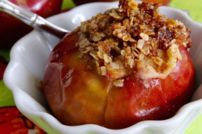 Запечённые яблоки с овсянкой и мёдом