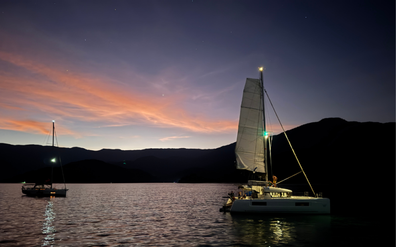 Это и восторг от природы, когда рядом с яхтой плывут дельфины, а над головой парят экзотические птицы. И полное погружение в моменты, когда вечером садишься на нос лодки, смотришь на закат — и ощущаешь абсолютную свободу. Это чувство невозможно передать словами, его нужно прожить.