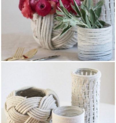 Можно обмотать веревкой стеклянные вазы, которые просто прекрасно впишутся в экзотические интерьеры: марокканский, индийский или японский.