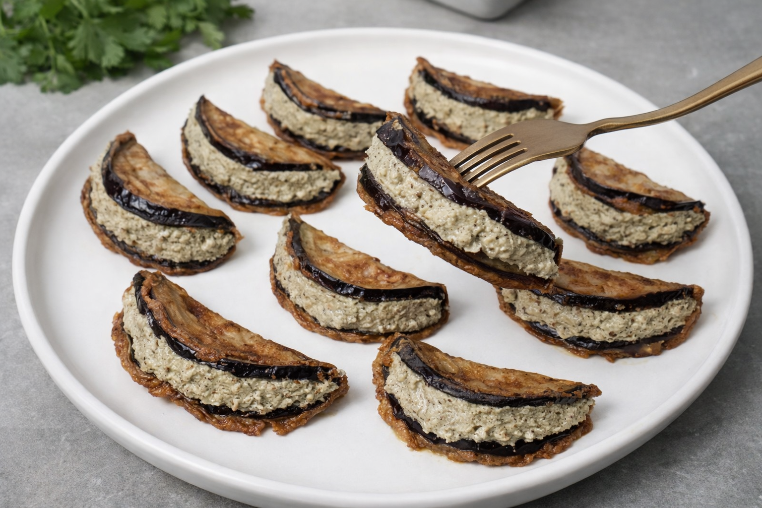 Закуска из баклажанов с грецкими орехами — холодное блюдо из обжаренных кружочков баклажана с ореховой пастой, чесноком, кинзой и специями.