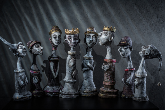 И наши милые фигурки выстроились в шахматном порядке возле ёлки во главе со свои Белым Королём и Белой Королевой, готовые к новым приключениям.